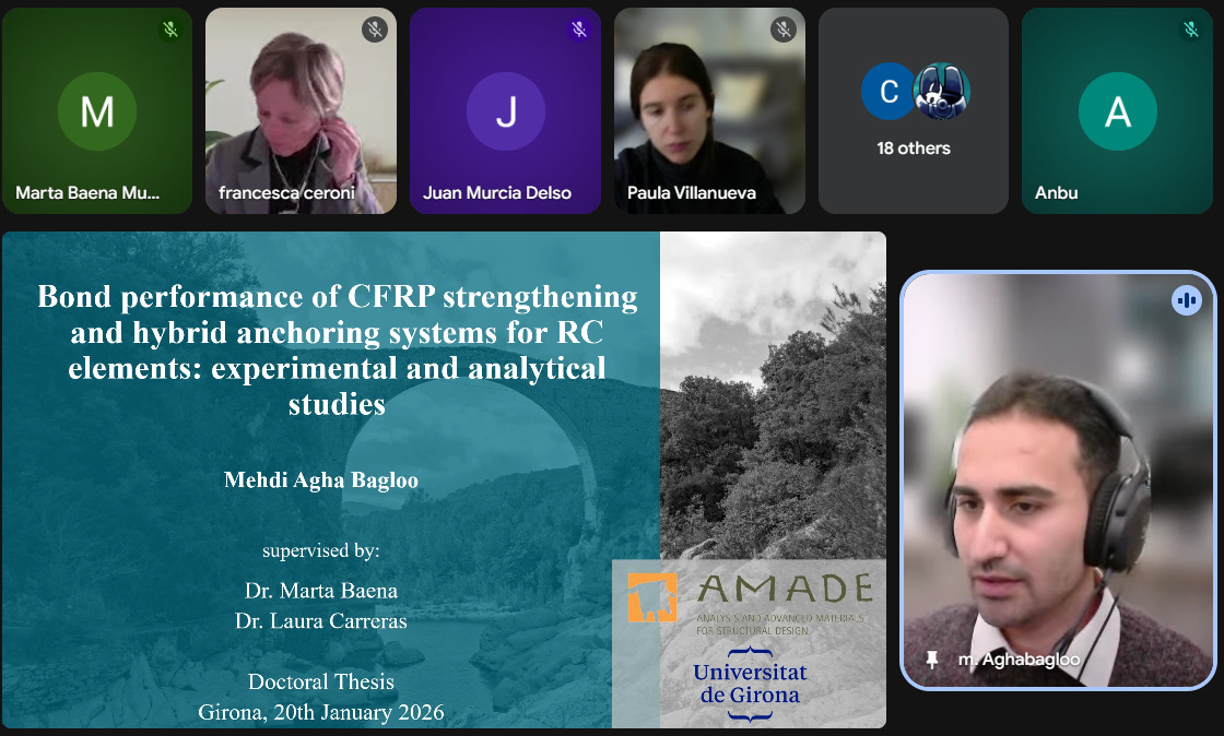 On January 20, 2026, Mehdi Agha Bagloo successfully defended his PhD thesis titled: “Bond performance of CFRP strengthening and hybrid anchoring systems for RC elements: experimental and analytical studies.”